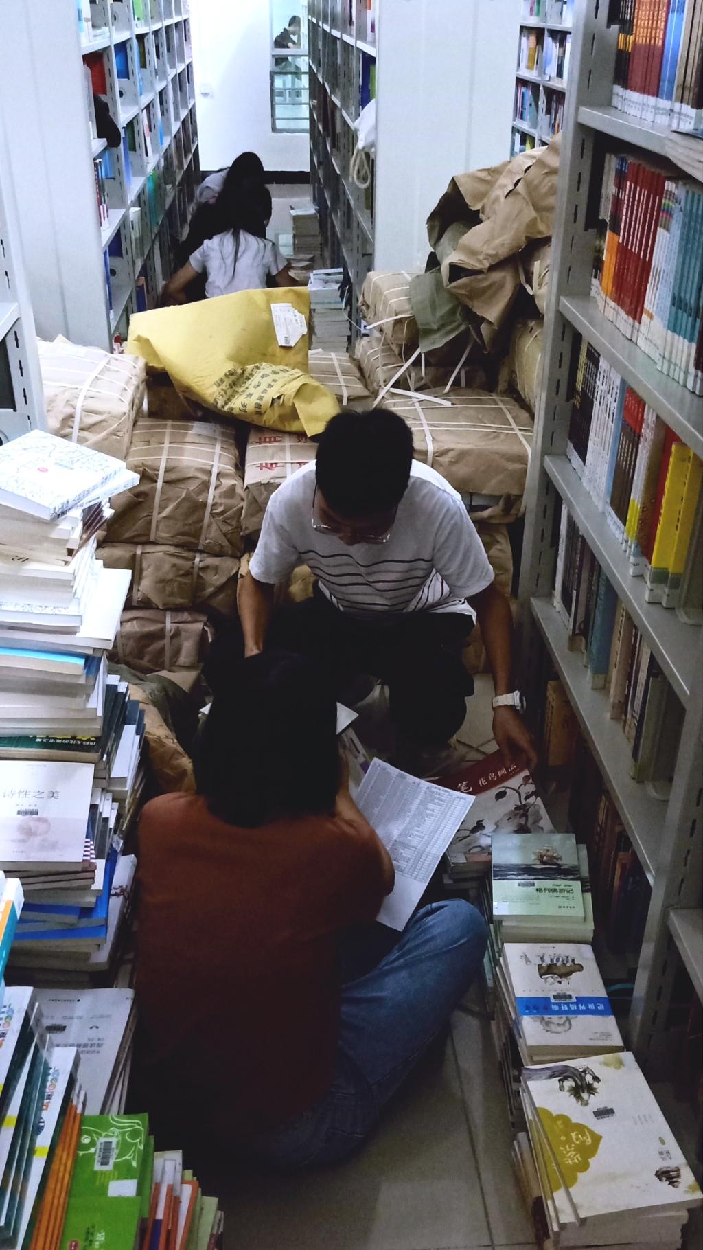 10月11日下午,志愿者们早早集合在图书馆门口,在图书馆龚鹏飞老师的指导下,支部傅展鹏同志带领大家开始着手核对整理图书。大家有条不紊地进行着,时间一分一秒地过去,堆积如山的图书也渐渐变少,效率高的组别与速度较慢的同学协同合作,图书整理工作便顺利完成。在清理完毕包装垃圾、配合老师做好收尾工作后,满头大汗的同志们怀着满满的成就感离开了阅览室。在图书馆门前,馆长熊家良教授和志愿者们合影留念。