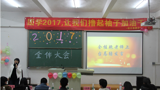 为了给同学们树立良好的榜样,传递优秀的品德,2017年3月16日晚上7点,会计系在第二实验楼c205教室举行了系团总支学生会全体大会。会计系副主任全桂艳及系全体辅导员出席了本次大会。