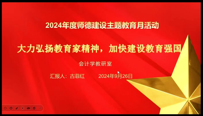 师者,传道授业解惑,会计教研室将持续推进师德师风建设,为弘扬教育家精神,加快建设教育强国贡献自己的力量。