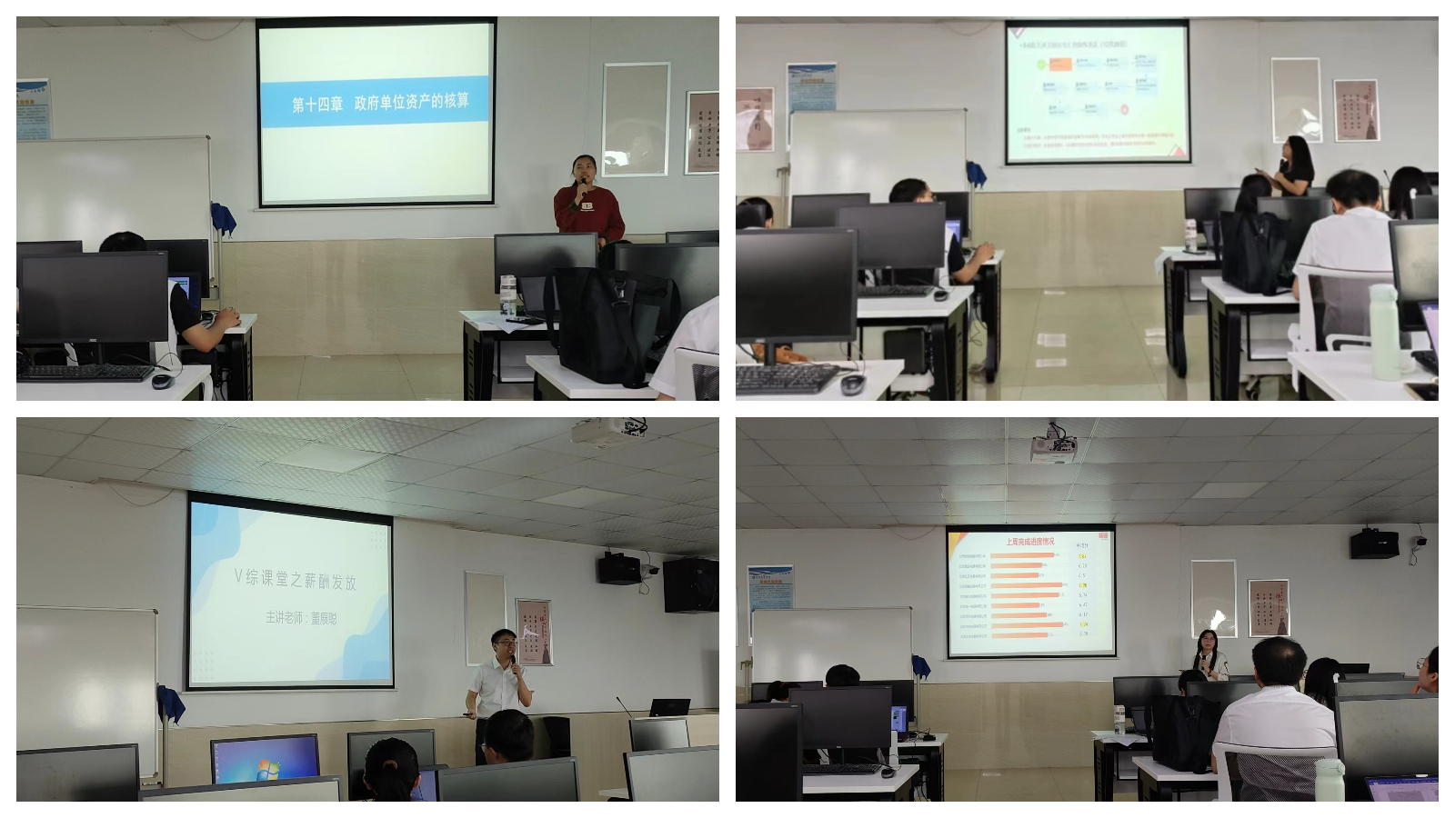 4月11日,来自教研室财会综合仿真实训、财务共享中心运营实训、高级财务会计、财务数据大分析、企业运营综合仿真实训、政府及非盈利组织会计等6门课12名老师,以教学进度第十二周的课堂教学为内容进行15分钟说课,部分课程代表任课教师到场观摩。负责教学工作的彭良军老师、教研室正副主任、督导及课程组长组成评委组,从教学内容、教学组织、教学语言与教态、教学课件、课堂把控能力五个方面对磨课老师进行评审打分。