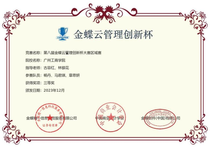 第八届金蝶云管理创新杯大赛由中国商业会计学院主办,对引导学校促进就业和适应产业发展需求,积极开展创新型、应用型、复合型技术技能人才培养,提高学生的创新意识和实践能力具有重要的意义。