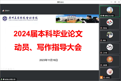 为更顺利地开展2024届会计学毕业生毕业论文指导工作,使会计学专业教研室专任教师对毕业论文写作及指导要求有更进一步的了解,会计学专业教研室在2023年11月18日晚上通过腾讯会议召开《2024届本科毕业论文动员、写作指导大会》线上讲座。本次讲座邀请到会计学专业负责人黄璐副教授主持讲解,86名会计学专任教师踊跃参加。
