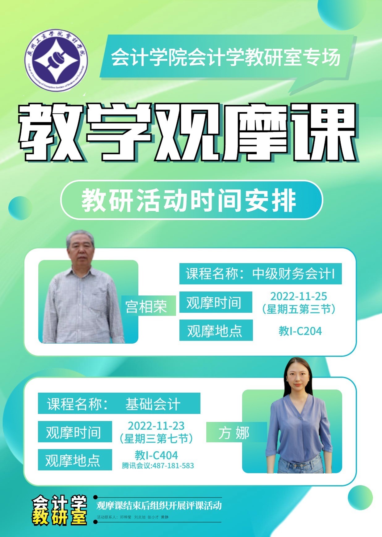 会前,会计学教研室组织了两次教学观摩课,分别是宫相荣教授主讲的《中级财务会计I》和方娜老师主讲的《基础会计》。