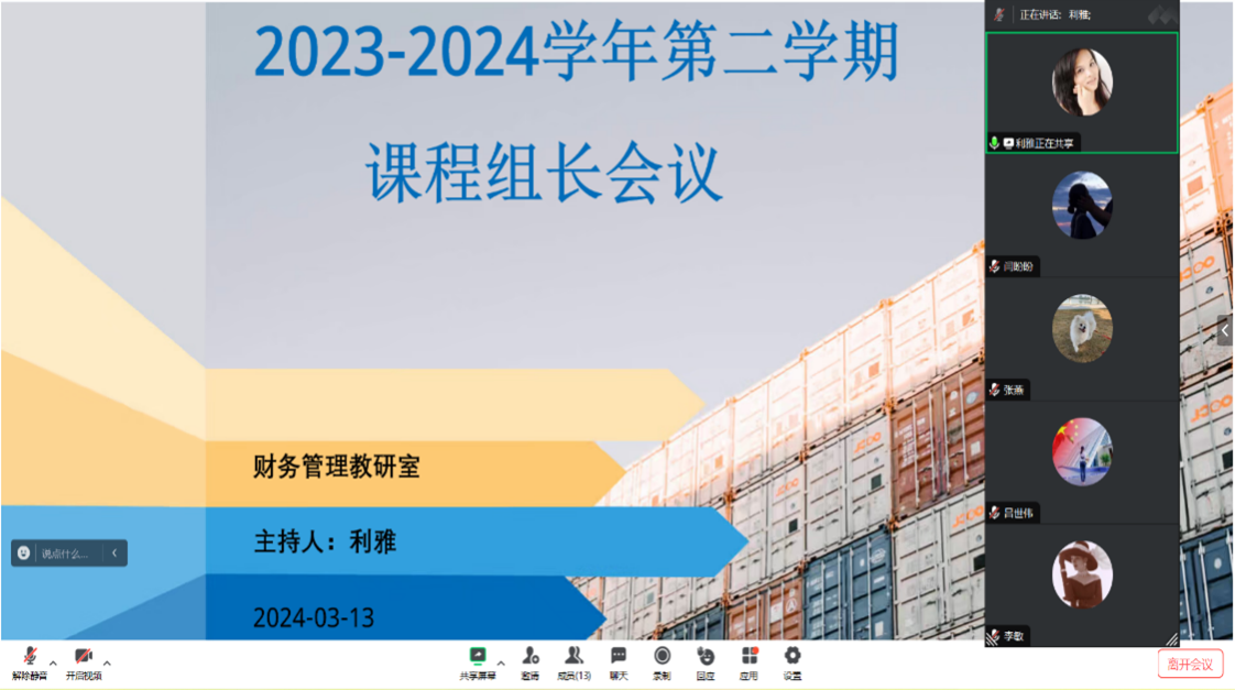 为进一步规划统筹新学期各项工作,3月13日晚上,财务管理教研室召开课程组组长线上会议。会议由教工第二党支部组织委员、财务管理教研室主任利雅主持。