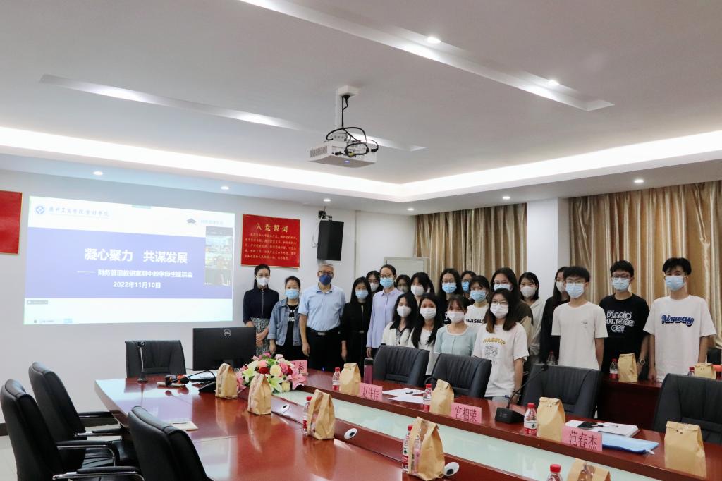 为深入了解学生需求,解决学生问题,进一步改善学生学习和生活的环境,促进师生之间的沟通与联系,推动学院高质量发展,11月10日下午,会计学院财务管理教研室在院部楼311会议室召开期中教学师生座谈会。会计学院副院长周福萍副教授、学院督导范春杰副教授、张燕博士以及部分师生代表参加。会议由财务管理专业教研室副主任周蕊老师主持。