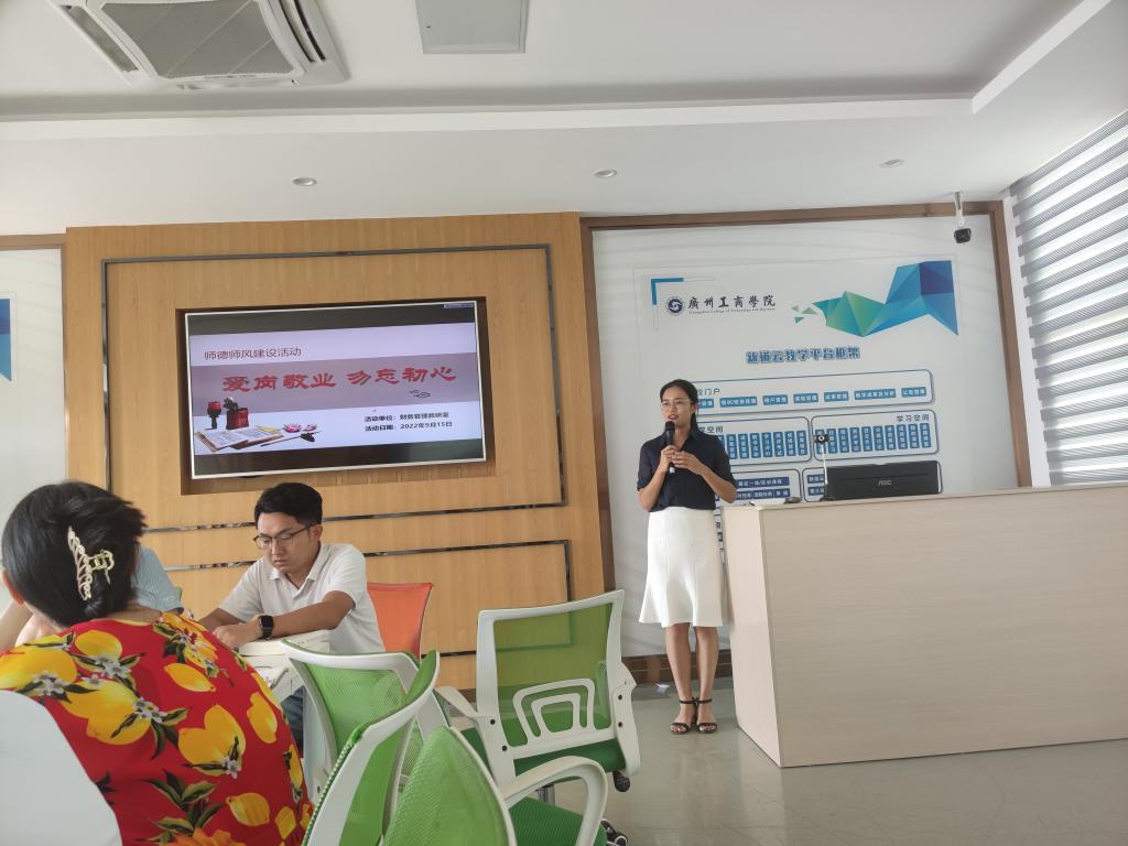 2022年9月15日,会计学院财务管理教研室教师代表在第二实验楼E602室,召开师德师风交流活动,会议由教研室主任利雅副教授主持。