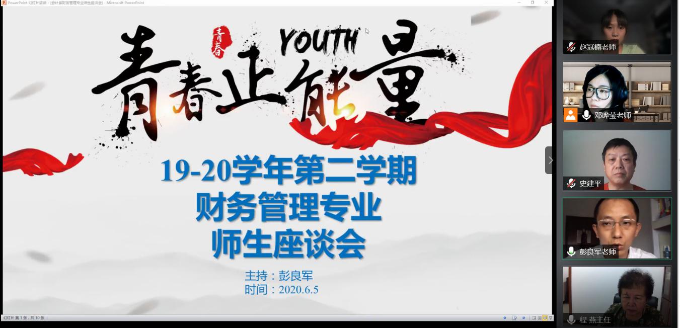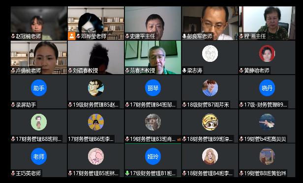 为了检验教学成果、加强师生间的有效沟通,财务管理教研室于2020年6月5日开展了2019-2020年第二学期师生线上座谈会活动。会议参与人包括2017级、2018级和2019级全体财务管理专业的学生代表,以及会计系程燕主任、史建平副主任、高玉莲副主任、宫相荣教授、刘福春教授、范春杰教授及部分其他财务管理教研室教师,座谈会由彭良军老师主持。