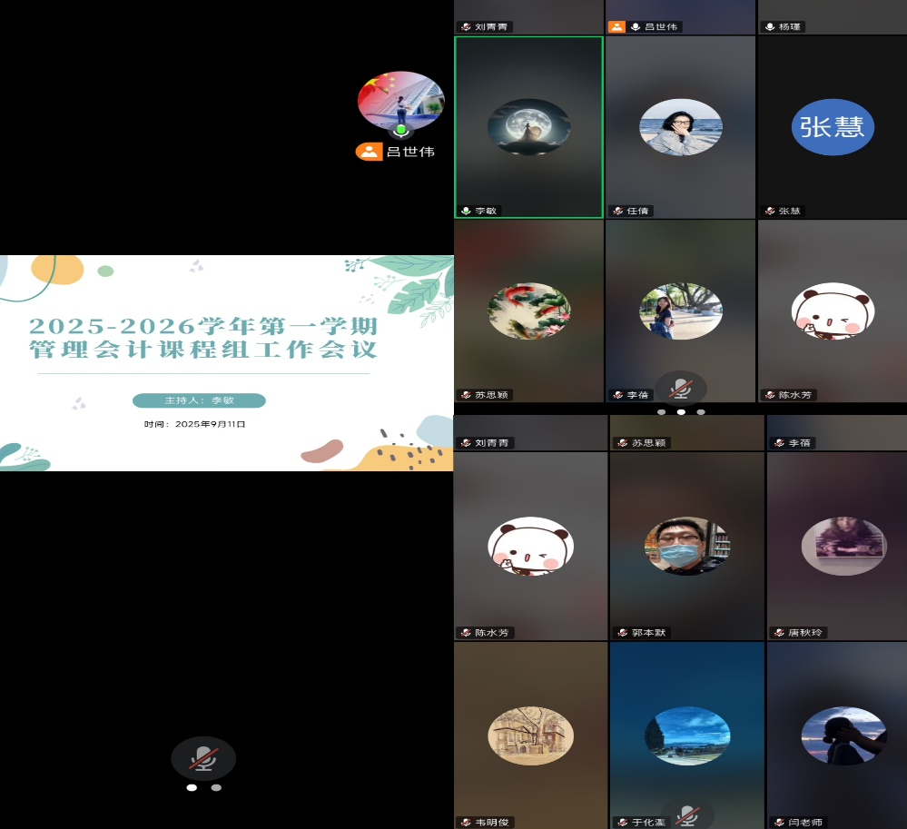 为全面提升教学质量,加强对教师的支持与培养,会计学院财务管理教研室管理会计课程组于9月11日晚组织召开新学期教学帮扶与准备工作线上会议。财务管理教研室副主任吕世伟老师主持会议,财务管理教研室主任杨瑾、管理会计课程组全体教师参加了本次会议。
