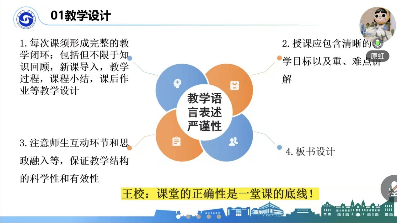 针对课堂教学,会议要求教师须精心设计包含知识回顾、新课导入、教学过程、小结与作业的完整教学闭环,注重教学目标、重难点讲解、师生互动与课程思政的有机融合。同时,应加强课堂管理,关注学生“前排率”、“抬头率”及“手机入袋率”,营造良好学风。