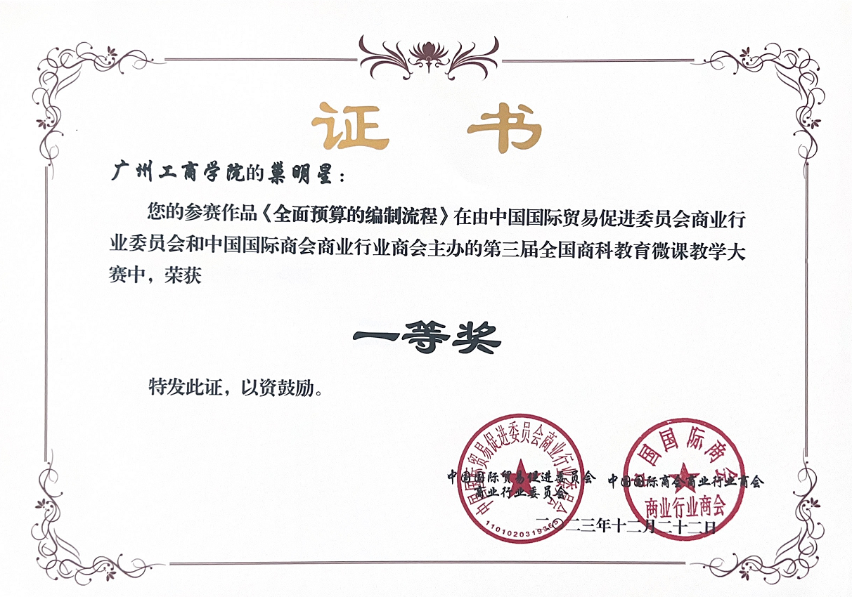 近日,2023年全国商科教育微课大赛获奖结果公布。会计学院教师巢明星主讲的《全面预算的编制流程》获得全国一等奖,赵盈科主讲的《审计学:重要性》和唐秋玲主讲的《作业成本法的过程原理讲解》获得全国二等奖,黄璐主讲的《会计教学育新人,追根溯源有章程》、林银花主讲的《领导的一般理论》和潘咏桢主讲的《市场营销第七章》获得全国三等奖。