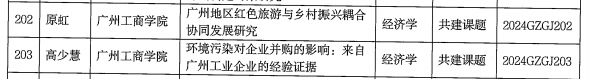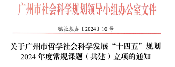 根据《关于广州市哲学社会科学发展“十四五”规划2024年度常规课题(共建)立项的通知》,我院高少慧博士主持的《环境污染对企业并购的影响:来自广州工业企业的经验证据》和原虹副教授主持的《广州地区红色旅游与乡村振兴耦合协同发展研究》成功获批立项。