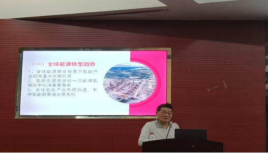 讲座开篇,温宪元教授首先梳理了全球能源转型的大趋势。他指出,在全球能源革命与“双碳” 目标引领下,氢能凭借来源多样、清洁环保、高能量密度、跨周期调节能力等突出优势,不仅能破解当前储能技术瓶颈、推动工业与交通领域深度脱碳,更能优化我国“富煤、贫油、少气”的能源结构,降低油气对外依存度,是未来能源体系绿色低碳转型的重要载体。