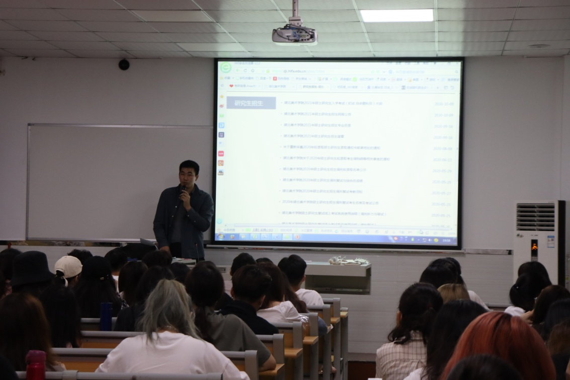 2021年全国硕士研究生招生基本告一段落,为给其他有意向考研的在校生提供帮助,4月20日,美术学院党支部在教学楼413举办以“考研经验分享”为主题的“与你同行-学术沙龙讲座”。