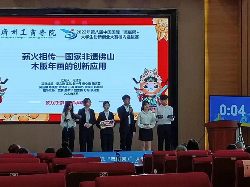 为响应国家“大众创业,万众创新”的号召,展示ky开元学生创新创业风采,持续激发ky开元学生的创新创业激情。ky开元自2022年3月份起举办第八届中国国际“互联网+”大学生创新创业大赛校内选拔赛,经过500多支队伍的层层选拔后,美术学院《薪火相传--国家非遗佛山木版年画的创新应用》项目进入决赛。