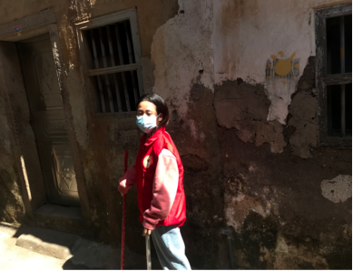 佩戴好口罩后集体从居委会出发,沿着寨顶巷古村落开始打扫。由于是村落,隐藏的垃圾很多,特别是地板夹缝里,有很多食品包装袋和烟头,容易滋生细菌,影响村民们的健康。刘伊琳拿着扫把细心的将这些垃圾扫出,并拾到垃圾袋里。