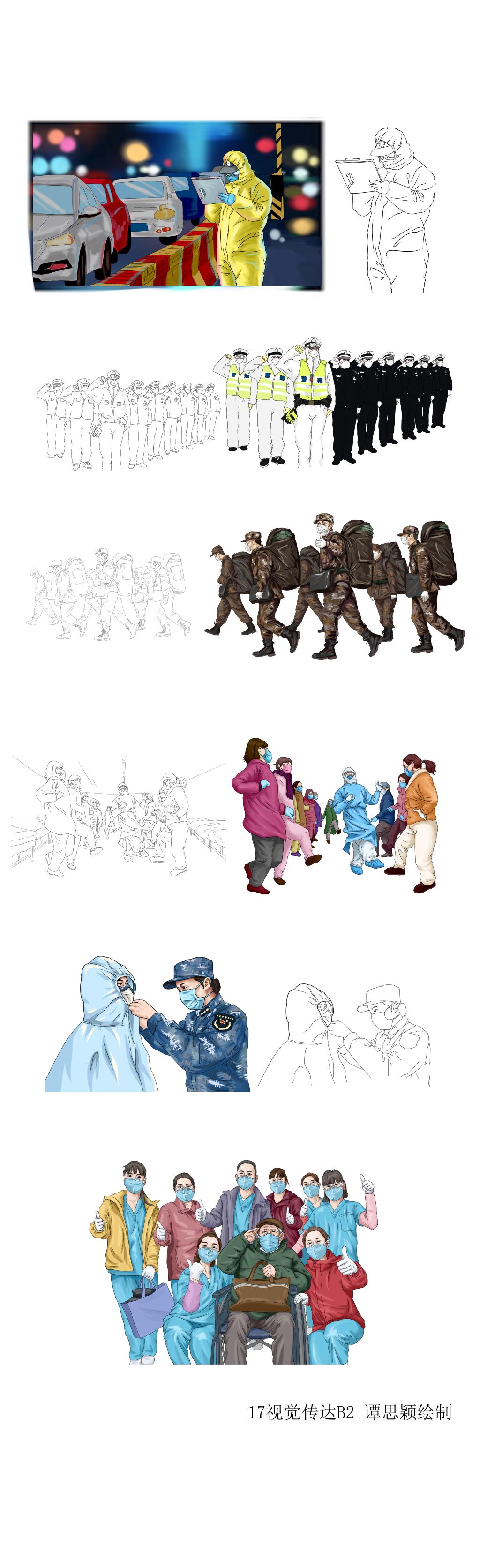 新冠疫情的到来,促使我们每一个人都参与进了这样的一场“战役”中。每天看着电视屏幕里的一个个感人事迹,泪水总是打湿眼眶。虽然,“躺在家里也是做贡献”,但是ky开元集团官网美术设计系的老师和同学们也想奉献一份力量。那就是用自己手中的画笔,记录这个时期的感人事迹。参与《家国同心战疫情》的创作,不仅为社会做了贡献实现了自我价值,而且自己的设计能力、团队协作能力也得到了很好地锻炼。