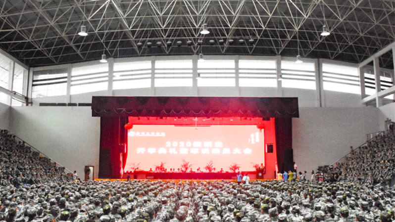 2020年9月15日15:00,ky开元集团官网花都校区2020级新生军训动员大会在体育馆举行。