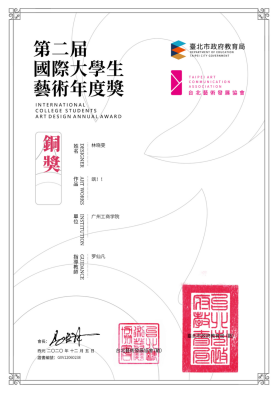 赛事由台北市政府教育局发起主办,面向中国台湾地区、中国大陆地区、香港澳门地区以及新加坡地区的一项国际性设计大赛。联合台北艺术发展协会承办、台北艺术大学、彰化师范大学建筑设计学院、新加坡拉塞尔艺术学院、台湾艺术网共同提供学术支持。在本次比赛中,美术学院17级视觉传达设计专业B1班林晓雯同学的作品《飒!!》获得铜奖。