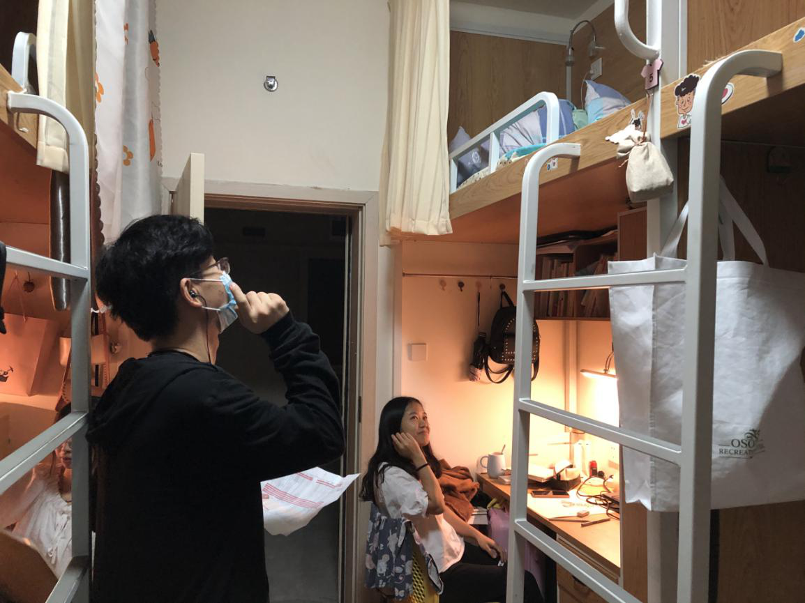 在检查宿舍卫生情况时发现,大部分寝室较为干净整洁,但有个别男生宿舍卫生情况较差,主要由于行李和衣物没有收纳整齐;极少数寝室地面打扫不彻底,桌面物品摆放凌乱。针对这几个宿舍存在的问题,辅导员当场进行监督整改,让学生整理好宿舍内务。