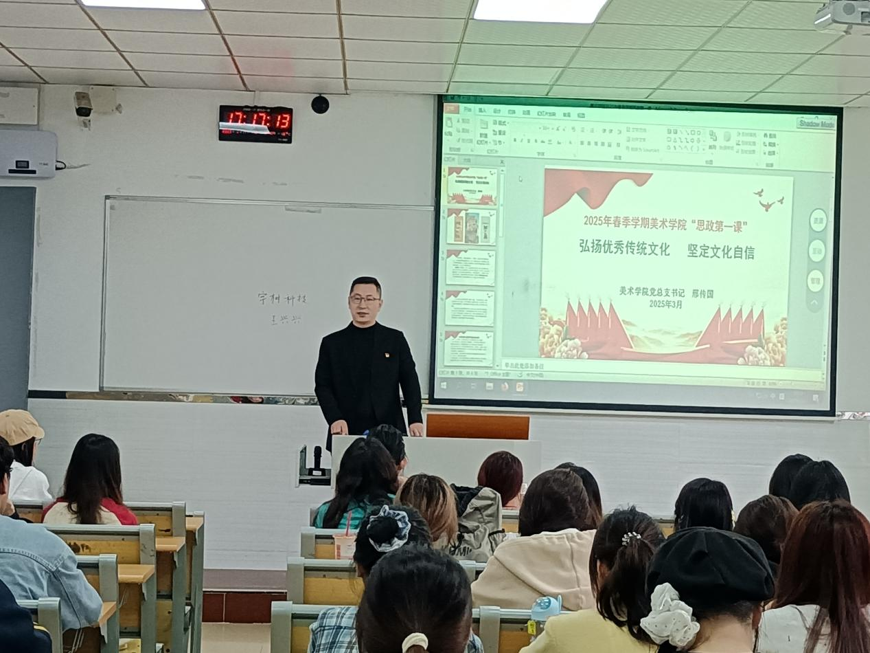 根据《ky开元集团官网2025年春季学期高校党委书记、校长和院党组织书记、院长上第一堂思政课活动的通知》要求,2025年3月11日,美术学院在花都校区教学楼313组织开展2025年春季学期“思政第一课”,本次思政课主讲人为美术学院党总支邢传国书记,美术学院2024级学生代表和辅导员代表参加。