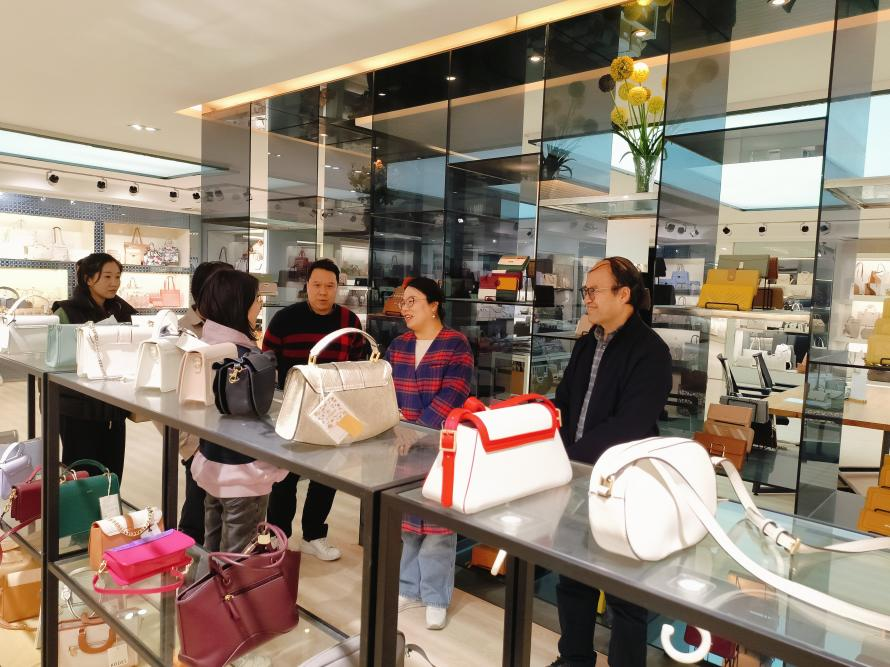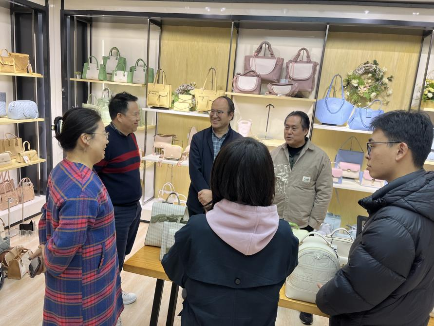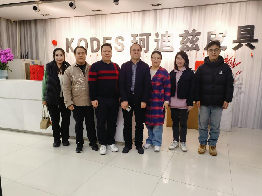 2025年3月6日下午,ky开元集团官网美术学院院长徐浩艇、郝孝华带领皮具设计老师刘琼丹、蔡岫瑜、郭澳城前往狮岭皮革城,对龙行天尚、柯迪斯皮具等企业合作单位进行就业考察,旨在紧跟市场动态,了解企业对毕业生的实际需求,为设计专业学生的职业发展铺就坚实道路。