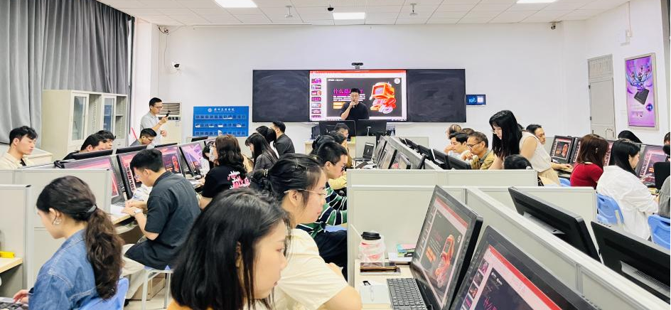 培训中,李东轩讲师以“实践与互动”为核心,设计了内容丰富、形式多样的培训活动。活动中,老师们深入探讨了AI数字人设计及其应用,学习了如何利用AI技术建设个性化教学助手,增强课堂互动性。他们还掌握了OBS课程录制与直播技巧,为线上教学和高质量教学视频制作打下基础。在专业设计工具操作板块,老师们热情参与AI辅助海报生成和创意设计实践,提升了设计效率。动漫分镜智能生成技术的介绍和操作为教学提供了新视角,引导学生运用先进技术讲述视觉故事。三维产品建模与虚拟展示课程让老师们体验了数字化产品世界,为产品设计类教学提供支持。课程建设研讨环节围绕“人工智能赋能设计类课程资源开发”和“数字化教学案例设计与实践”两大主题,大家热烈讨论了如何将人工智能技术整合到课程资源建设中,分享见解和经验,探索了利用数字化手段创造创新教学案例的路径。