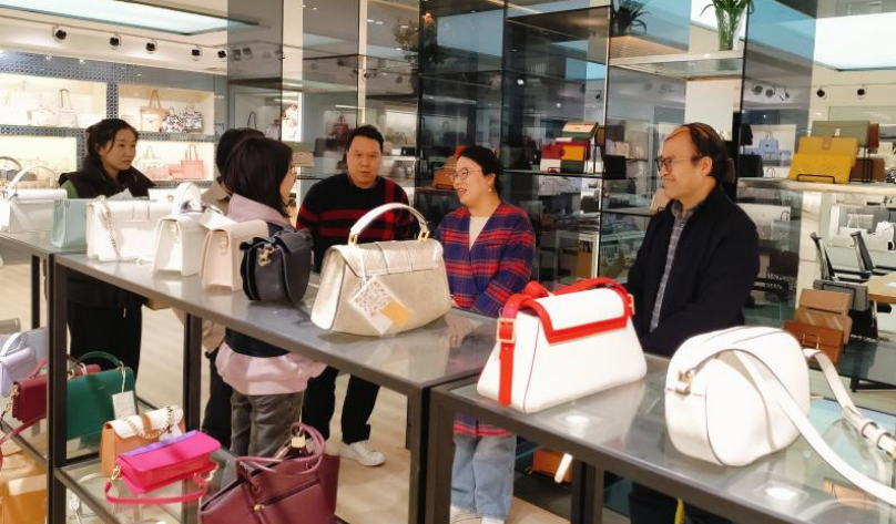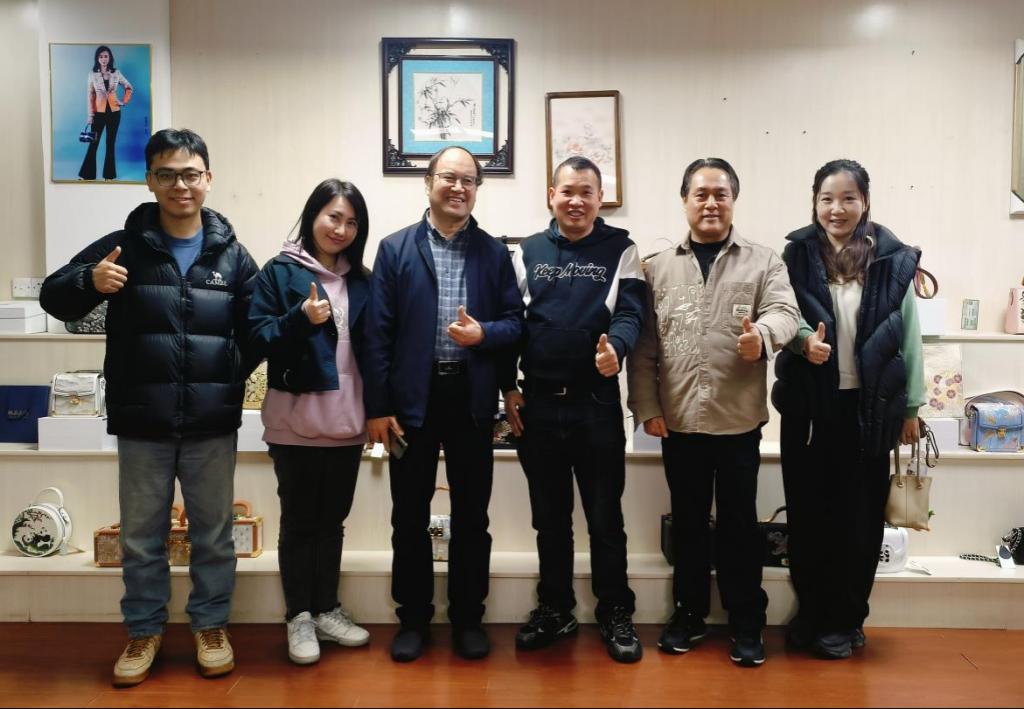 2025年3月26日下午,ky开元集团官网美术学院院长徐浩艇、副院长郝孝华带领皮具设计老师刘琼丹、蔡岫瑜、郭澳城前往狮岭皮革城,对校企合作单位龙行天尚、柯迪斯皮具进行市场调研,旨在紧跟市场就业动态,了解企业对皮具专业建设的要求和对毕业生的实际需求,为视觉传达设计专业皮具班学生的职业发展铺就坚实道路。