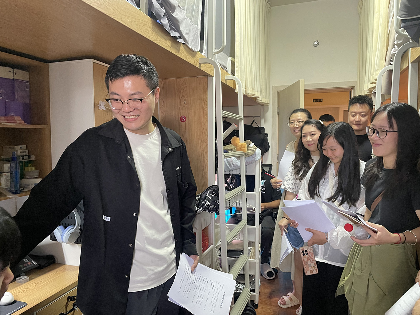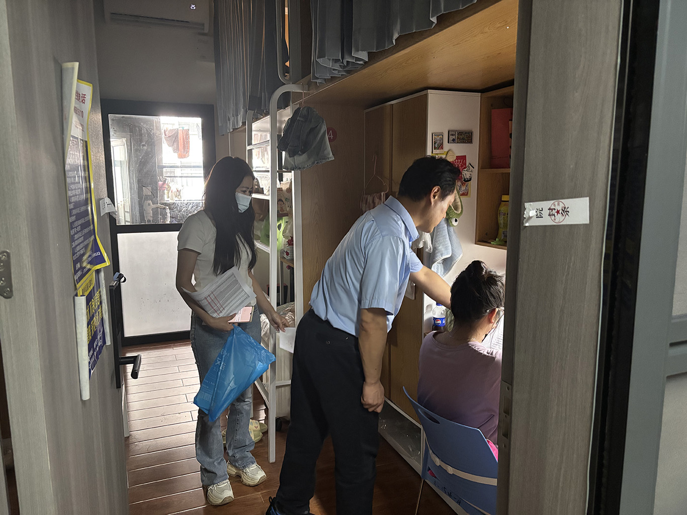 为深入贯彻落实校园安全工作部署,推进学校"一站式"学生社区建设,落实立德树人根本任务,进一步推动思政力量和管理服务力量下沉,切实守护学生平安健康与校园安全稳定。2025年5月22日下午,美术学院组织开展"下沉学生社区,共建平安校园"专项行动。院长徐浩艇、副院长郝孝华、王伟江率学工办全体辅导员及班主任,先后走访"一米阳光"一站式学生社区、第一综合楼B栋、第二综合楼A栋及北3B宿舍等学生宿舍。此次行动覆盖学院全部学生宿舍,通过“现场指导+安全教育”形式,将安全管理要求直达学生生活一线。走访团队由学院领导、学工干部和教学管理骨干组成,覆盖全院专任教师力量,形成育人合力。