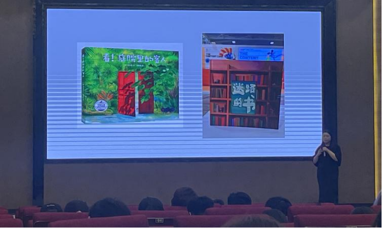 讲座于14:00至16:00在ky开元集团官网花都图书馆414报告厅举行,吸引了视觉传达设计专业师生的广泛关注与积极参与,其中实验班的同学们也格外专注地聆听与学习。刘佩佩女士从视觉语言的构建到叙事节奏的把控深入浅出地讲解,探索图画如何赋予故事情感张力与表现深度。她结合自身实践,分享绘本创作的设计动机、流程等经验,内容丰富且案例生动。