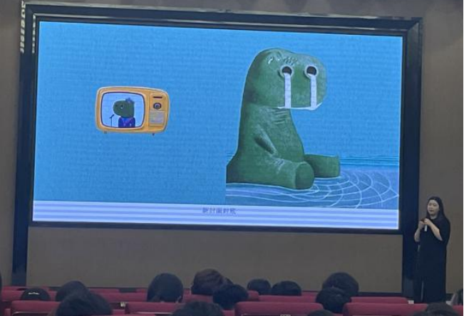 互动环节中,22动漫班学委就毕业设计中的绘本设计创作以及如何利用绘本反映社会问题请教刘佩佩女士,学生们还就绘本创作过程、技术应用、行业发展趋势等积极提问。麦育硕老师也从学校与学生角度提出参加比赛、专业技能、就业工作等问题,刘女士耐心解答,给予诸多宝贵建议与指导。特别是针对实验班同学们提出的关于如何将绘本创作与前沿设计理念相结合、如何在作品中体现更深层次的文化内涵等问题,刘佩佩女士给出了极具启发性的见解,鼓励同学们勇于创新,不断拓展创作的边界。
