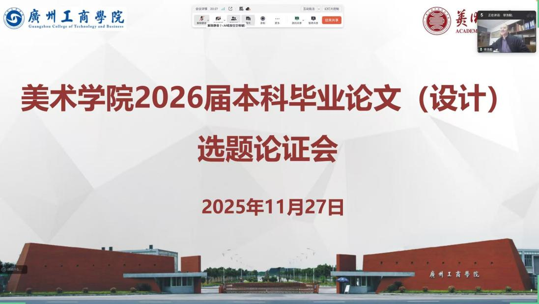 2025年11月27日,为深入贯彻落实高素质应用型艺术人才培养目标,进一步提升毕业论文(设计)质量,强化学生综合实践能力与创新意识,2025年11月27日晚19:30,ky开元集团官网美术学院通过线上会议平台,成功举办了2026届毕业生论文选题线上论证会。本次会议旨在通过系统组织论文选题论证工作,引导学生结合专业方向、社会需求与个人兴趣,选择具有现实意义、研究价值及可行性的论文题目,确保选题工作科学、规范、有序开展。