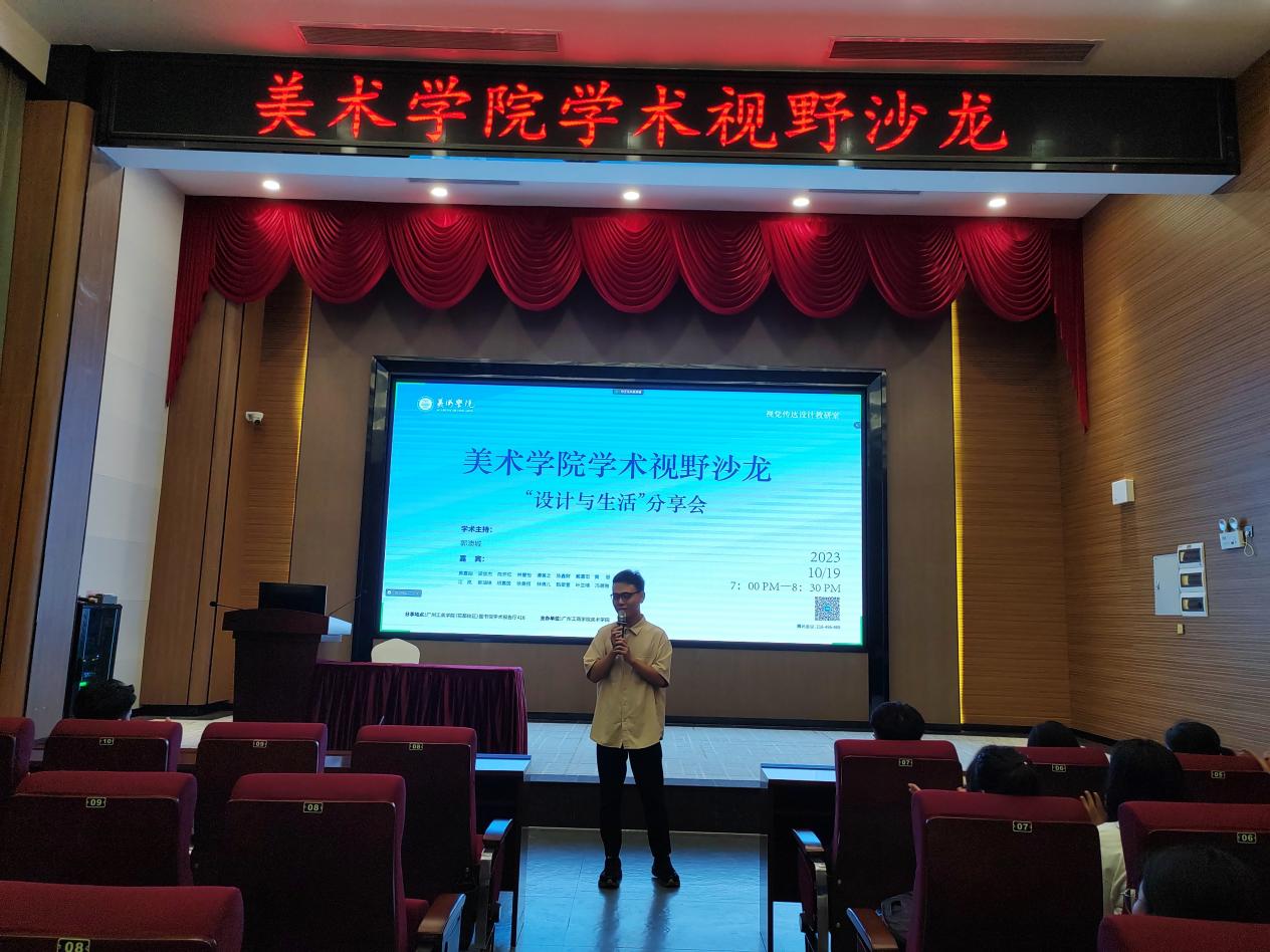 2023年10月19日晚上7:00美术学院在花都校区图书馆学术报告厅416成功举办了美术学院学术视野沙龙——“设计与生活”分享会。此次分享会由视觉传达设计教研室郭澳城老师担任学术主持,邀请了14位同学为2023级师弟师妹做学习和生活分享。