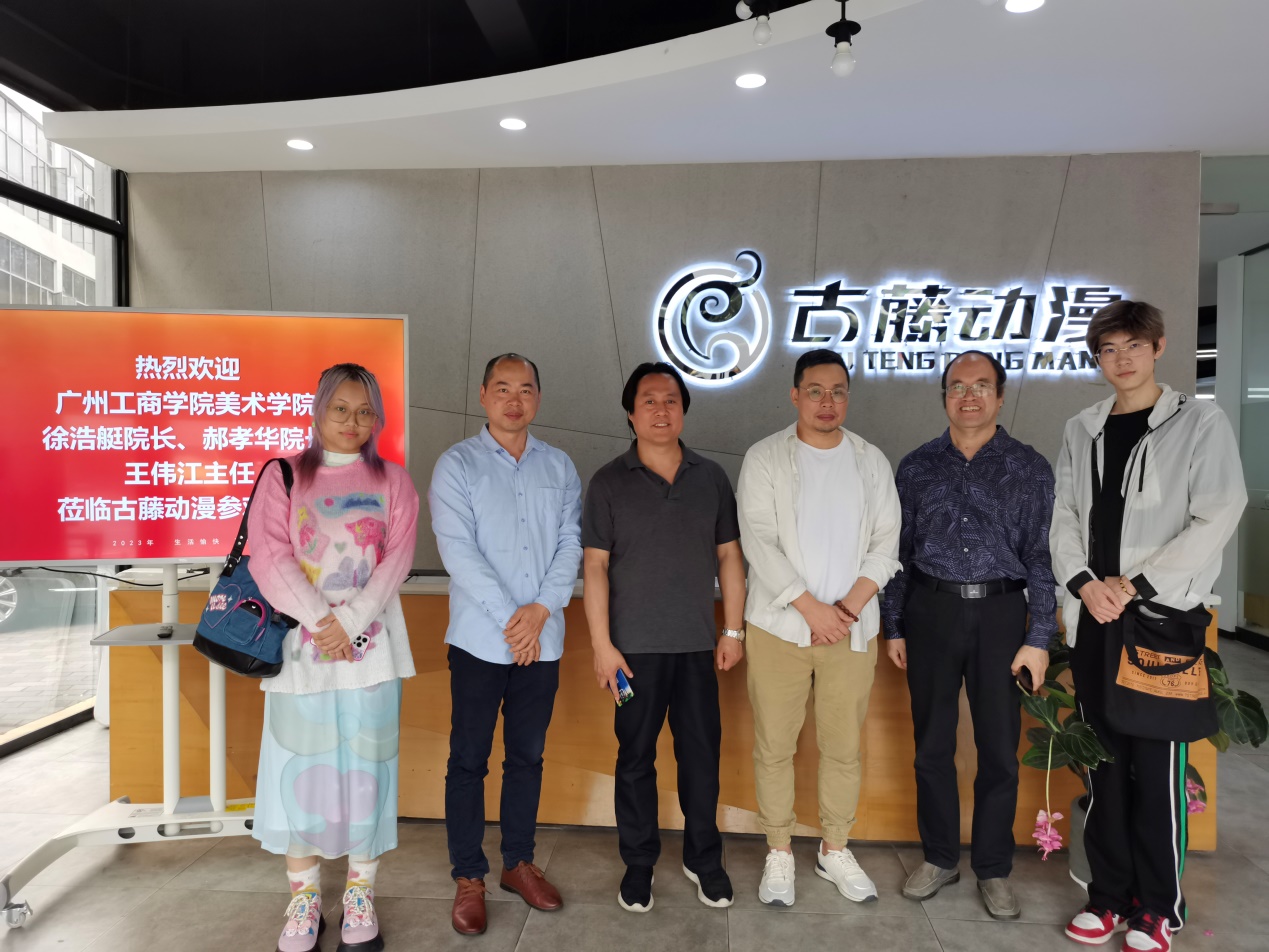 在广州古藤科技有限公司,徐浩艇院长一行走访参观了公司的创意生产现场等地,详细了解动漫产业的创作经营、人才需求等情况。广州古藤科技有限公司负责人为师生展示了企业文化,介绍了企业基本概况及人才职业培养计划等内容,并与同学们围绕职业规划、就业选择等方面展开深入讨论。