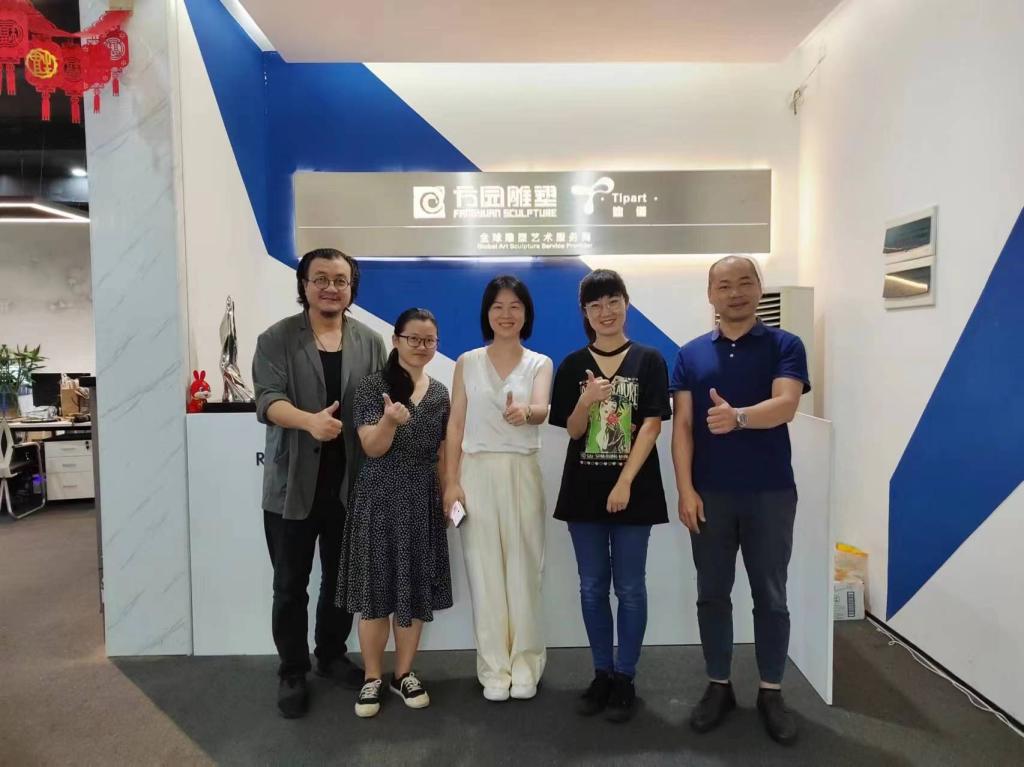 学院一行四人在平行线宝珍堂(广东)国际文化艺术有限公司董事长彭文斌、广东方园时尚雕塑有限公司总经理何礼的带领下参观了两个公司的工作环境,并对有关人才培养、校企合作、就业岗位实习等问题进行了交流探讨。交谈中,王伟江主任介绍了西安外事学院的学院特色、专业设置以及学生规模等情况。公共艺术教研室主任陈姝墨介绍了公共艺术专业人才培养概况,以及专业相关课程的建设情况。陈姝墨主任希望能够利用企业在实践中积累的经验,为学生开展学习讲座,校企之间通过实践项目竞赛等实现校企合作育人的目的。
