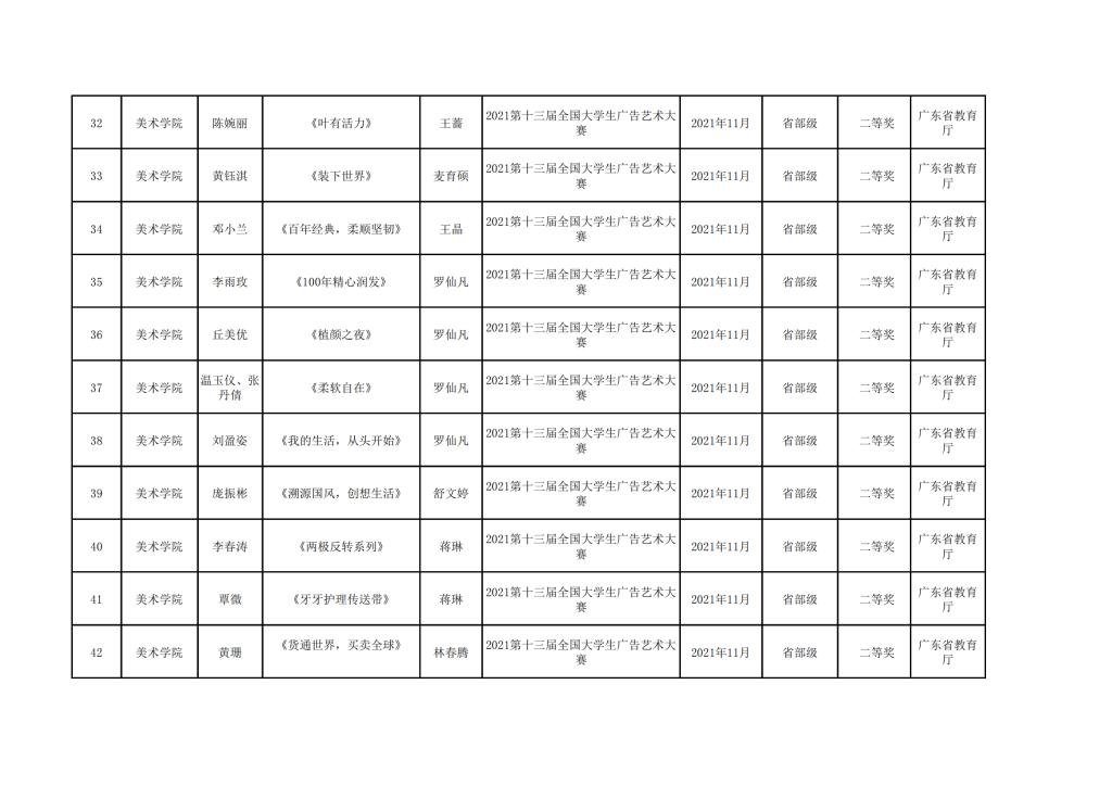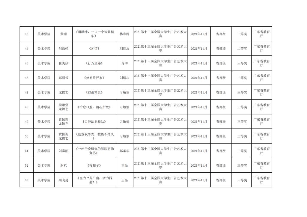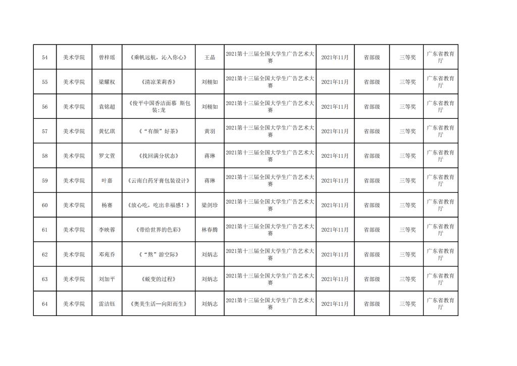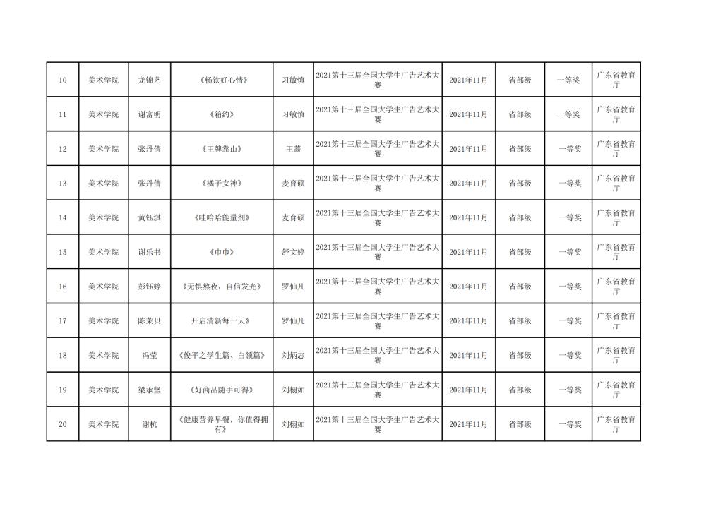 2021年美术学院学生参与各类省级文化艺术比赛获奖