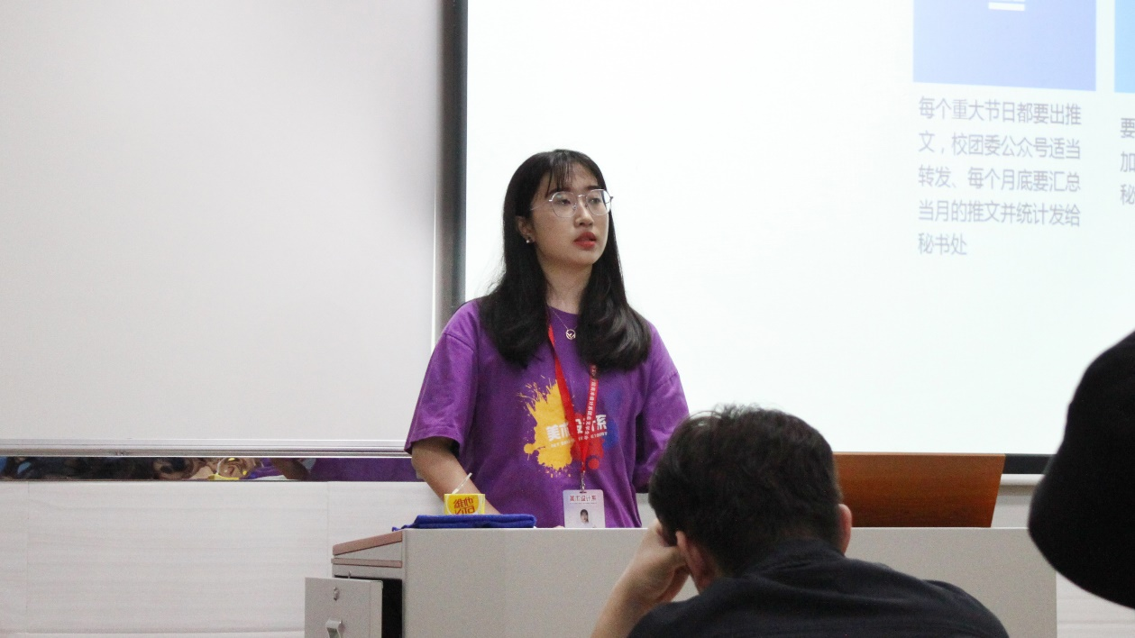 卓婷婷师姐以自身经历激励干事们,努力工作,鼓励团学干事们积极工作。并希望团学干事们保持对工作的热情,对于工作中所存在的不足,能在今后的工作中,不断改进,提升自己,共同进步。