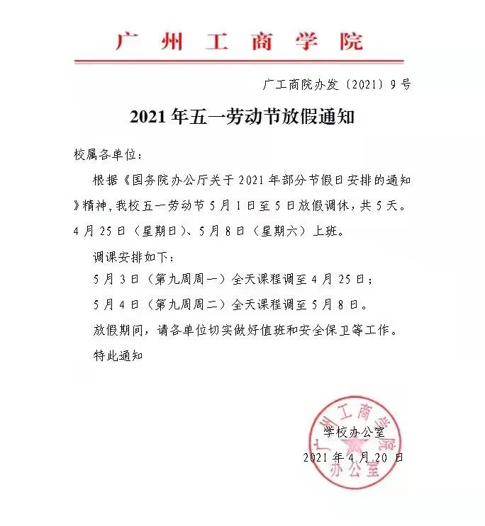 通知丨2021年劳动节放假通知