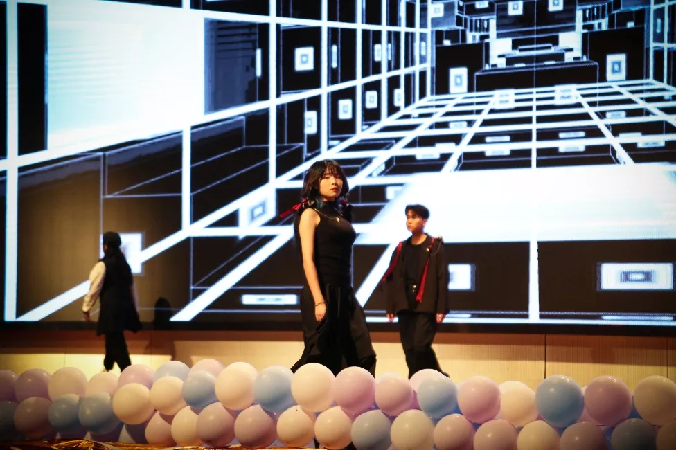 当混搭撞上动感的音乐,黑白撞上交错的背景墙。美术学院团委学生会礼仪部于2021年10月28日18:30在花都校区体育馆展开了一场潮流的视觉盛宴。