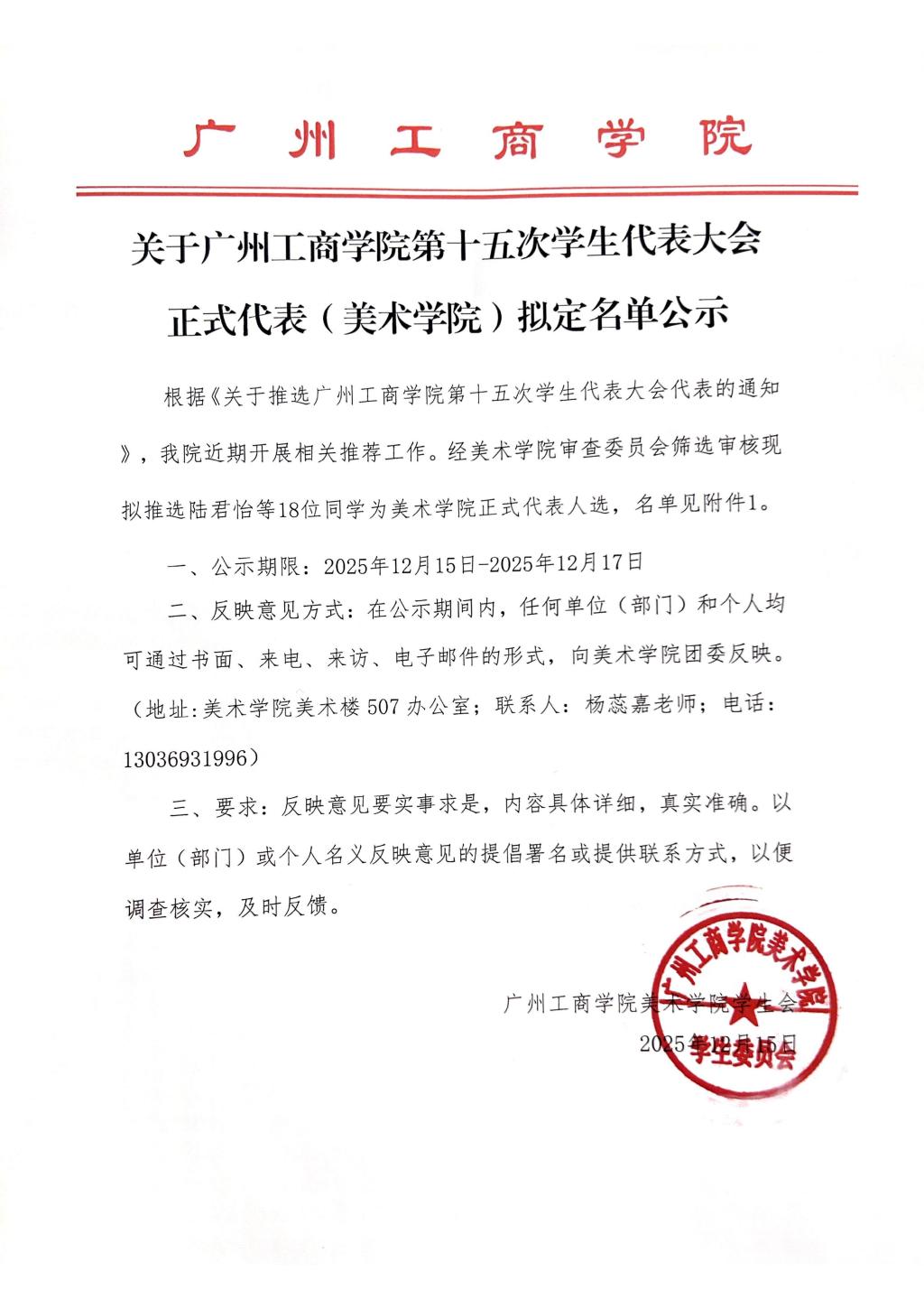 关于ky开元集团官网第十五次学生代表大会正式代表(美术学院)拟定名单公示