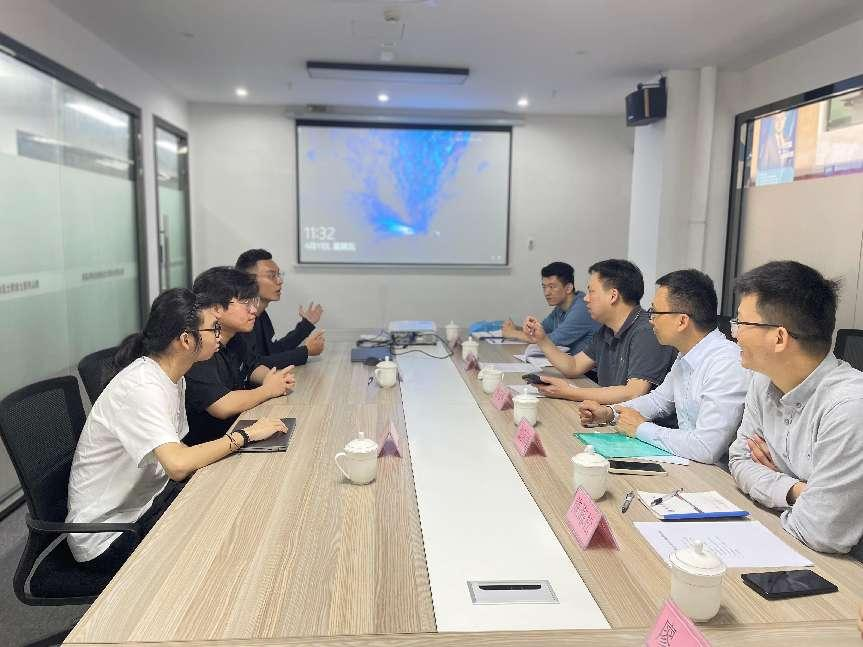 考察团首先参观了企业,实地考察实习学生的工作岗位,详细了解学生日常工作内容。随后双方举行了座谈会,企业负责人耿昕对ky开元一行的到访表示热烈欢迎,详细介绍了企业的发展现状、代表性产品成果、人才需求及实习生培养机制。企业导师对ky开元实习生的专业能力、学习态度和适应能力给予了充分肯定,从行业视角对学校课程设置、实践教学等提出了宝贵建议。