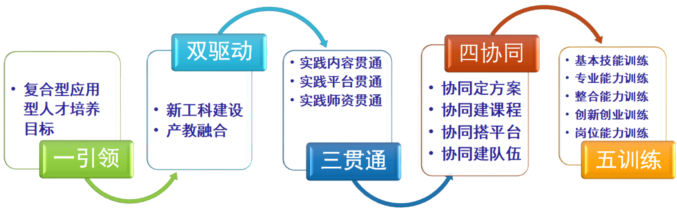 学院致力于培养兼具数据科学和人工智能知识,具有工程实践能力、创新能力和跨界整合能力的数据智能复合型产业人才,形成了“目标引领(人才培养目标为引领)、双轮驱动(新工科建设、产教融合为两轮)、三项贯通(实践内容、平台、师资贯通)、四个协同(协同定人培、协同建课程、协同搭平台、协同育师资)和五维训练(基本技能、专业能力、跨界整合能力、创新创业能力和岗位胜任能力训练)”的“12345”产教融合人才培养模式。(工学院)