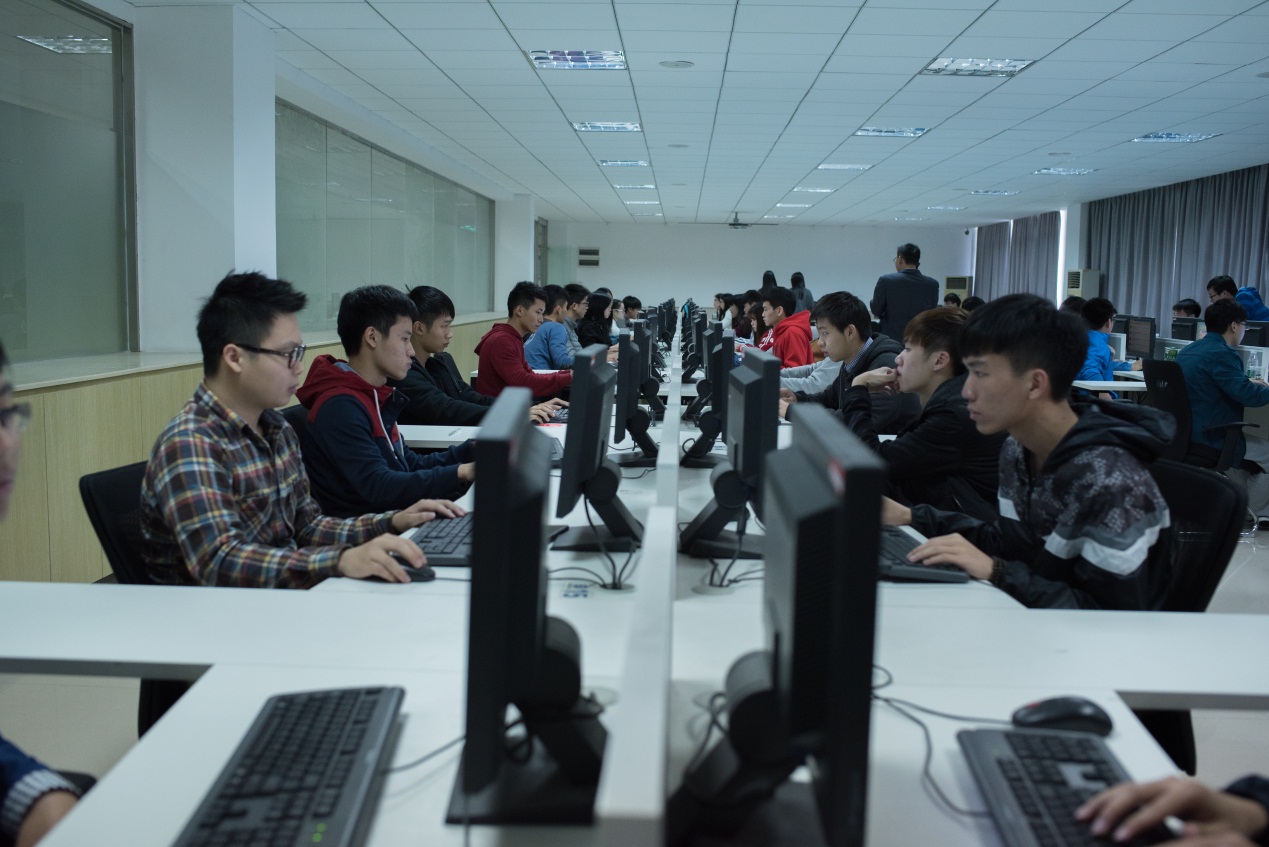 下午16时,参赛团队陆续到达赛场。首先由每组的队长进行抽签,确定参赛队伍的赛场座位并入座后,参赛者们开始调试竞赛设备。一切准备就绪,赛场的老师一声令下,大赛随即开始。参赛者们摩拳擦掌,比赛伊始便马不停蹄地忙了起来。