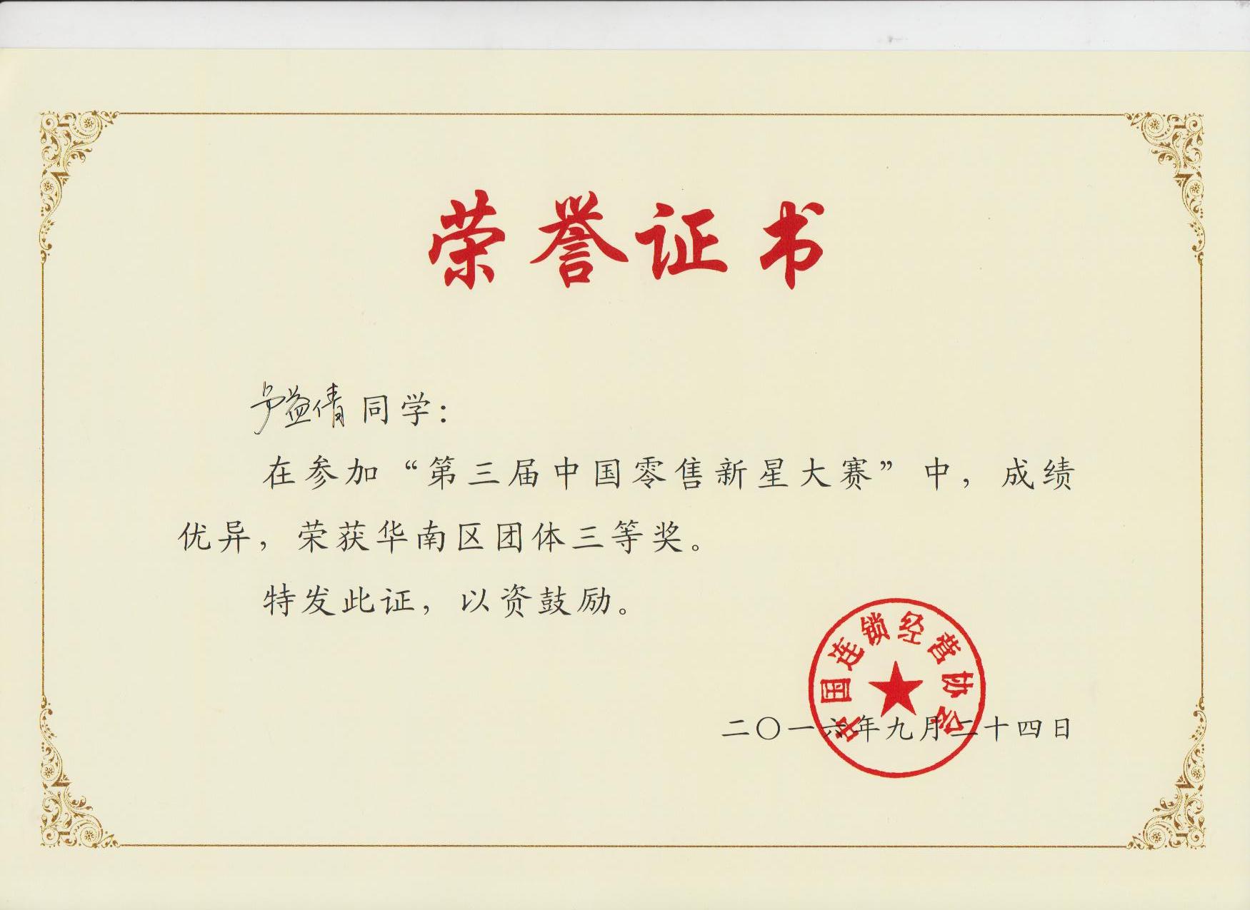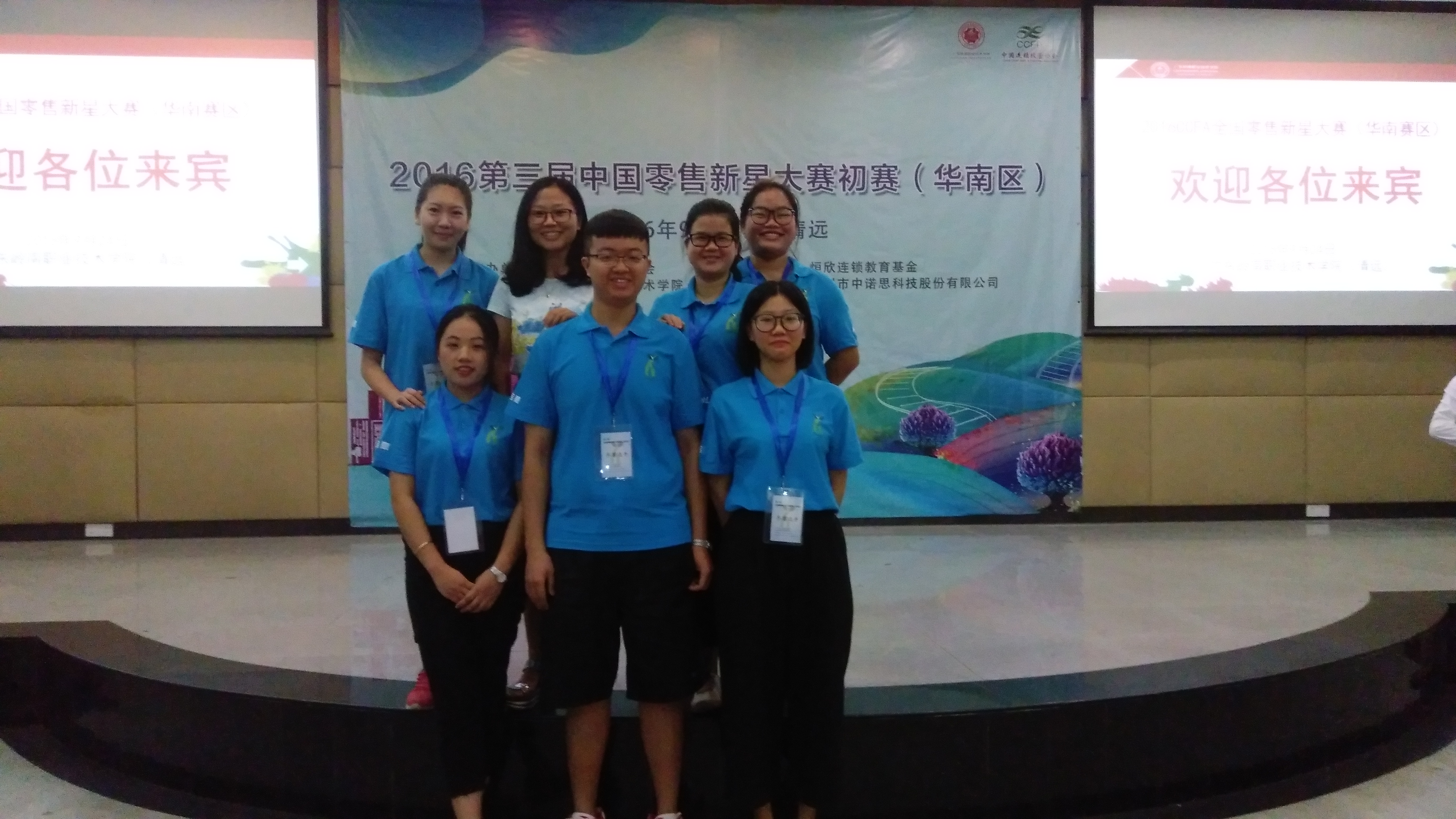 2016年9月23-24日,经济贸易系杨美玲、黄享政老师带领14级市场营销、连锁管理的6名同学组成两队到广东岭南职业技术学院清远校区参加“第三届中国零售新星大赛”华南赛区决赛。