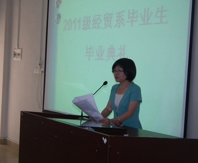 起始,她代表经贸系全体老师们向圆满完成学业的11级经贸系全体毕业生表示最热烈的祝贺,最衷心的祝愿!