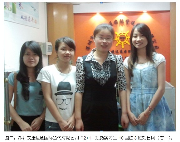在经济与贸易系师生的共同努力下,国际贸易实务专业校企合作已经初具规模,多家涉外公司进行了校企合作意向沟通,仅就国际货代企业来看,目前深圳东捷运通国际货运代理有限公司、深圳恒航国际货运代理有限公司、深圳利航达国际货运代理有限公司、深圳顺欣达国际货代公司、广州佳洋国际物流公司、广州歆达国际货运代理公司、广州汉宏国际货代公司等多家国际货代企业自2012年7月与国贸专业合作开展“2 1”顶岗实习工作。