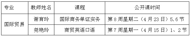 为了提高教学质量,贯彻及实施高职教育理念,国际贸易实务教研室按照系部统一部署及安排,自2012年9月起,积极开展公开课活动。上学期公开课主讲教师为潘银坪老师(《国际商法》)、韩伟艳老师(《报关与报检实务》),本学期公开课主讲教师为谢育玲老师(《国际商务单证实务》)、尧艳玲老师(《商贸英语口语》)。同时推荐韩伟艳老师参加学院青年教师课堂竞赛。