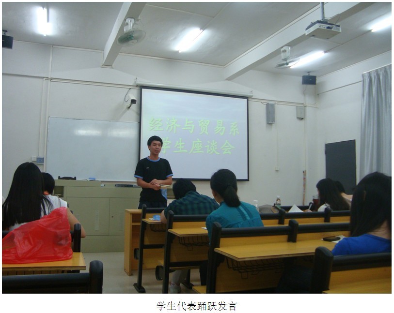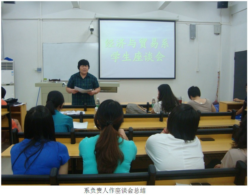 5月16日下午,经济与贸易系在三水校区第一教学楼C203召开2012—2013学年第二学期期中教学检查学生座谈会。参加此次座谈会的有系主任李月娥老师,各专业教研室主任余小勤老师、邓志虹老师、谢晖老师,辅导员雷婧老师、张桂文老师以及2012级各班学生代表。