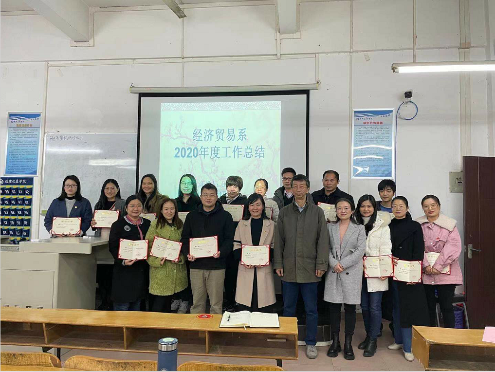 2020年1月7日上午,经济贸易系全体老师在实验楼106室召开经济贸易系2020年度总结表彰大会。