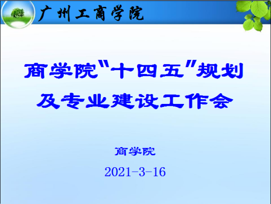 2021年3月16日下午,商学院在实验楼501会议室召开商学院“十四五”规划及专业建设工作会,商学院领导、各专业负责人、正副教研室主任、教研室主任助理等人员参加本次会议。