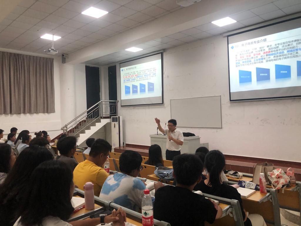 宣讲会主要围绕电子商务专业介绍以及课程的解读对新生进行专业教育。首先,易主任向新生们介绍了学校、学院的概况以及电子商务专业的概念、定位,接下来邓老师从我院电子商务专业的电商创业协会、三进校活动、校外实践基地等方面进行介绍,为新生描绘了未来四年的大学生活蓝图,最后,易老师从就业方向、相关职业证书的获取、电子商务的核心课程等方面向学生们提出应该规划好四年的大学生活的建议。